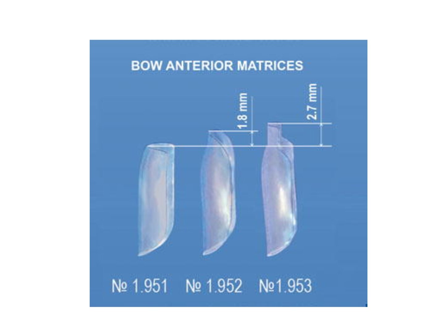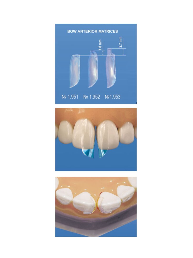 Bow anterior matrices are available in 3 shapes with different height of subgingival protrusion: