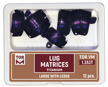 Lug Titánové Matrice 1.353T (12ks) Výrobca: TOR VM Kód dodávateľa: 1.353T Lug matrice poskytujú úplnejšie zapojenie zubov než sekčné matrice. Lug matrice umožňujú utiahnuť matricu k susednému zubu v jednom z troch smerov. Diery v hrane matrice zabezpečujú spoľahlivejšie manipuláciu s matricou pri inštalácii a extrakcii. 50 ks. - + Pridať do košíka 10 € za 1 ks. Cena bez DPH: 8.13 €