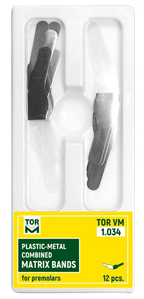 Plastovo-kovové kombinované maticové pásy pre premoláry 1.034 (12 ks) Výrobca: TOR VM Kód dodávateľa: 1.034 0 ks. - + Pridať do košíka 3.5 € za 1 ks. Cena bez DPH: 2.85 €