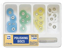 Kotúče so štyrmi druhmi brúsnej vrstvy sú účinné na dokončovanie a leštenie kompozitných náhrad vrátane výplní umiestnených v proximálnej oblasti.