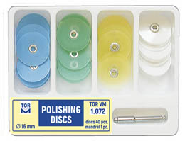 Kotúče so štyrmi druhmi brúsnej vrstvy sú účinné na dokončovanie a leštenie kompozitných náhrad vrátane výplní umiestnených v proximálnej oblasti.