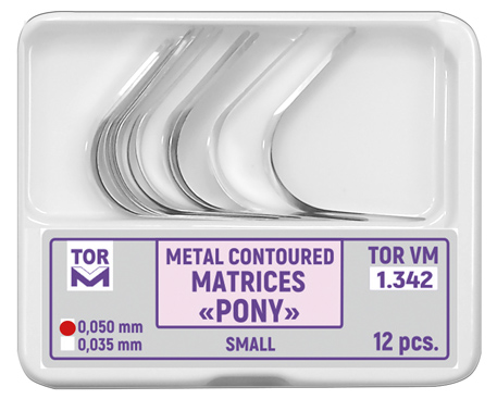 Pony matrice majú minimálnu dĺžku, ktorá je potrebná na úplné pokrytie zuba a umožňuje obnovu rozsiahleho poškodenia korunky zuba. Dvojica veľkých matríc 1.343 a 1.344 je viacúčelová.