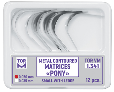Pony matrice majú minimálnu dĺžku, ktorá je potrebná na úplné pokrytie zuba a umožňuje obnovu rozsiahleho poškodenia korunky zuba. Dvojica veľkých matríc 1.343 a 1.344 je viacúčelová.