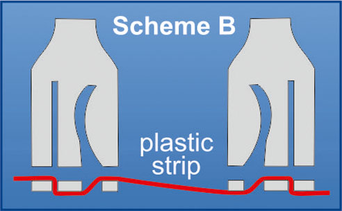 Systém dvojitých štrbín umožňuje fixáciu kovových aj plastových pások s brúsnymi a/alebo hladkými povrchmi.
