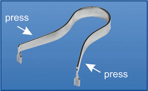Končeky držadla zatlačte bližšie, ako je znázornené na obrázku, vložte pás do otvorov (schéma nižšie).