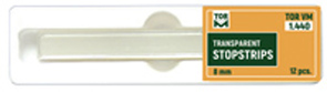 Transparentné prúžky stopstrips 1.440 (12ks) Výrobca: TOR VM Kód dodávateľa: 1.440 Šírka 8 mm, Dĺžka 100 mm Stopstrip ponúka možnosť ovládať iba jednou rukou. Nie je k dispozícii