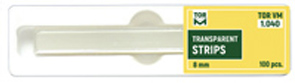 Transparentné prúžky 1.040 (100ks) Výrobca: TOR VM Kód dodávateľa: 1.040 Šírka 8 mm, Dlžka 95 mm 50 ks. - + Pridať do košíka 3 € za 1 ks. Cena bez DPH: 2.44 €
