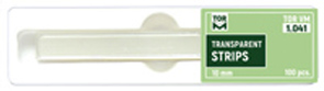 Transparentné prúžky 1.041 (100ks) Výrobca: TOR VM Kód dodávateľa: 1.041 Šírka 10 mm, Dlžka 100 mm 50 ks. - + Pridať do košíka 3 € za 1 ks. Cena bez DPH: 2.44 €